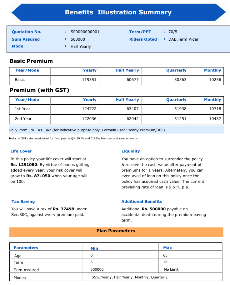 • Limited Premium Paying Term plan with PPT from 5 years to 16 years with premium modes as Yearly, Half Yearly, Quarterly and Monthly.