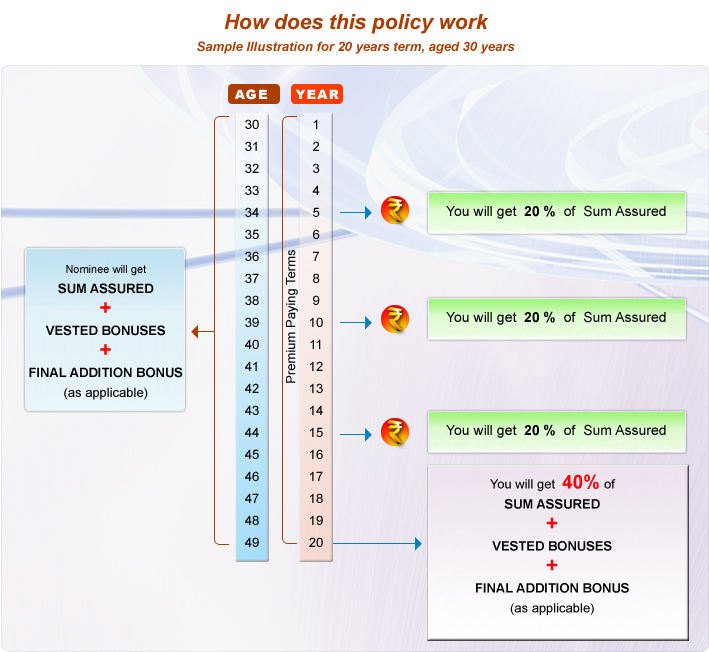 FULL Sum Assured + Bonus + Final Addition Bonus (as applicable) even if Survival Benefits are already paid.