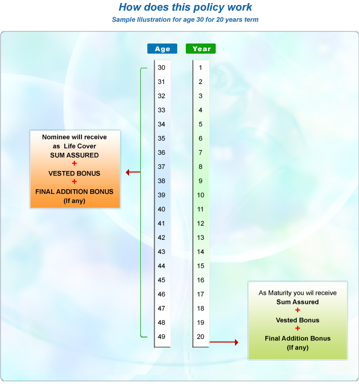 Sum Assured on death along with Vested Simple Reversionary Bonuses and final Additional Bonuses, if any.
