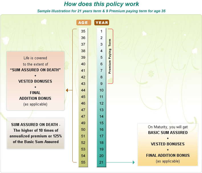 Basic Sum Assured + Vested Bonus + Final Additional Bonus.